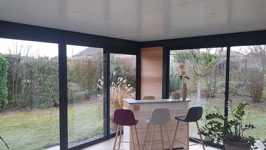 Fort de son expérience veranco a créé pour vous une véranda de forme rectangulaire à toiture plate offrant un vaste espace intérieur et un plafond à hauteur constante.